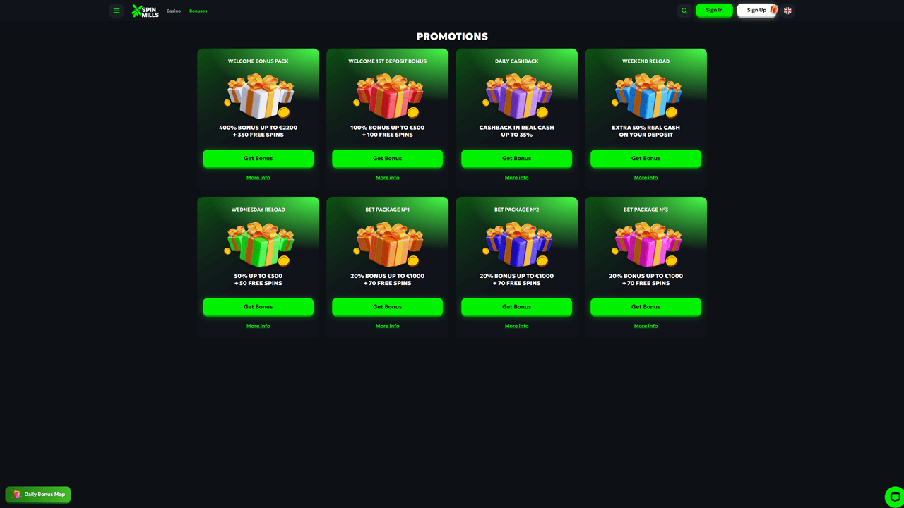 SpinMills Casino Welcome Bonus